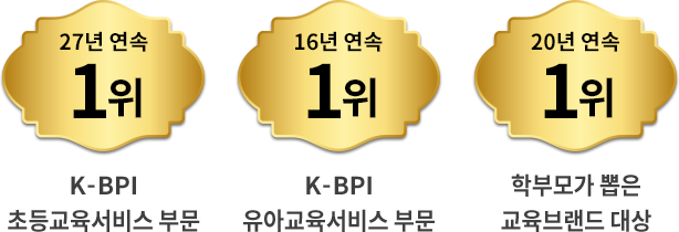 교육 업력 47년의 노하우 대교가 만든 찐짜 디지털 학습 25년 연속 1위 K-BPI 초등교육서비스 부문 14년 연속 1위 K-BPI 유아교육서비스 부문 18년 연속 1위 학부모가 뽑은 교육브랜드 대상